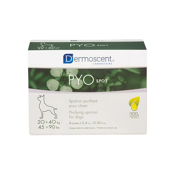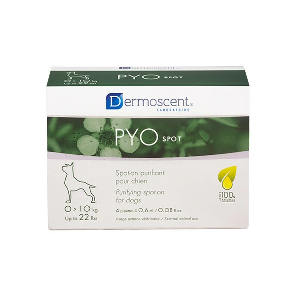 PYOspotÂź est le 1er spot-on spĂ©cialement formulĂ© pour purifier la peau des chiens sujets Ă des Ă©pisodes rĂ©currents dâinfections cutanĂ©es. GrĂące Ă ses actifs 100% naturels et notamment au complexe antimicrobien innovant PhytoC-2Âź, PYOspotÂź rééquilibre la flore cutanĂ©e et apaise la peau tout en renforçant la barriĂšre cutanĂ©e prĂ©servant ainsi un bon niveau dâhydratation.