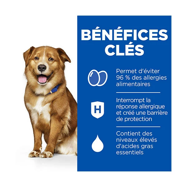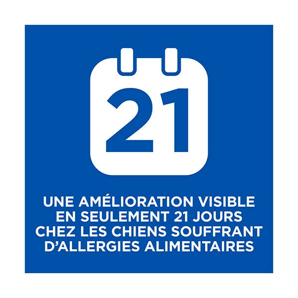 Une amĂ©lioration de la peau est visible au bout de 21 jours seulement chez les chiens souffrant d’allergies alimentaires. Cette nutrition a Ă©tĂ© pensĂ©e pour rĂ©duire en 28 jours seulement lĂ©chage, dĂ©mangeaisons, mouvements de tĂȘte et rougeurs cutanĂ©es, comme dĂ©montrĂ© dans une Ă©tude ouverte.
