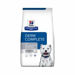 Hill’s PRESCRIPTION DIET Derm Complete Mini croquettes pour chien est la seule alimentation pour les sensibilitĂ©s alimentaires et environnementales. Elle aide Ă gĂ©rer les allergies, la peau sĂšche, les dĂ©mangeaisons et le phĂ©nomĂšne de grattage chez le chien.