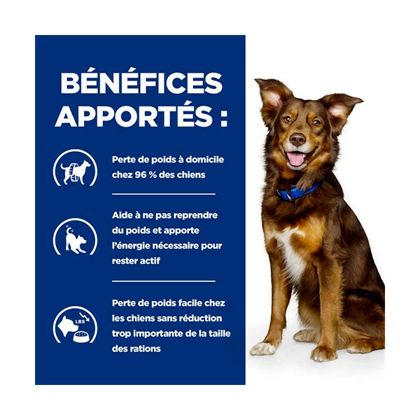 - Cliniquement prouvé pour diminuer en toute sécurité la graisse corporelle de 28% en 2 mois chez le chien.