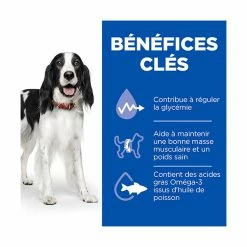 - Réduction des calculs de struvite chez les chiens prédisposés à l’obésité.