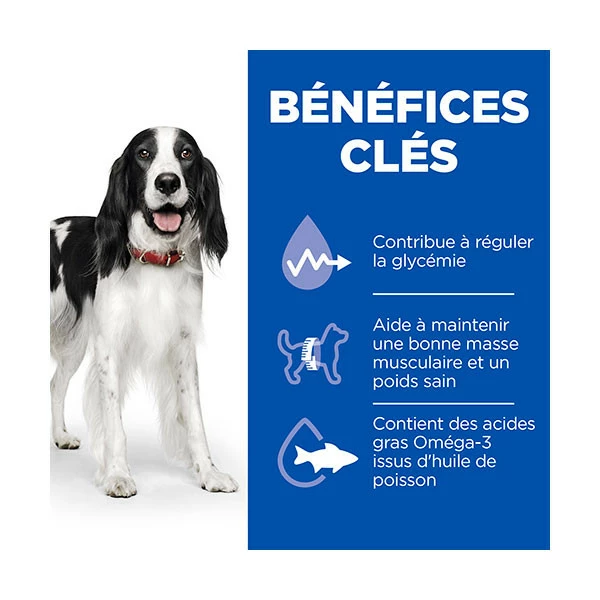 - Hill’s PRESCRIPTION DIET w/d Aliment pour Chien au Poulet est un aliment diĂ©tĂ©tique complet pour chiens adultes, en vue du soutien de la rĂ©gulation de l’apport de glucose (diabète sucrĂ©). Cet aliment diĂ©tĂ©tique contient une faible teneur en monosaccharides et disaccharides.