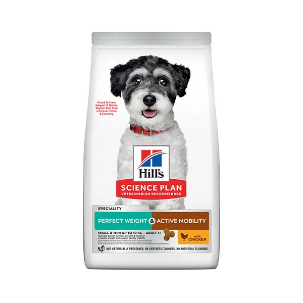HILL’S SCIENCE PLAN Canine Adult Perfect Weight Active Mobility Small & Mini est l’aliment idĂ©al pour aider votre petit chien Ă retrouver et maintenir son poids de forme sans lui imposer un rĂ©gime alimentaire complexe et stricte.