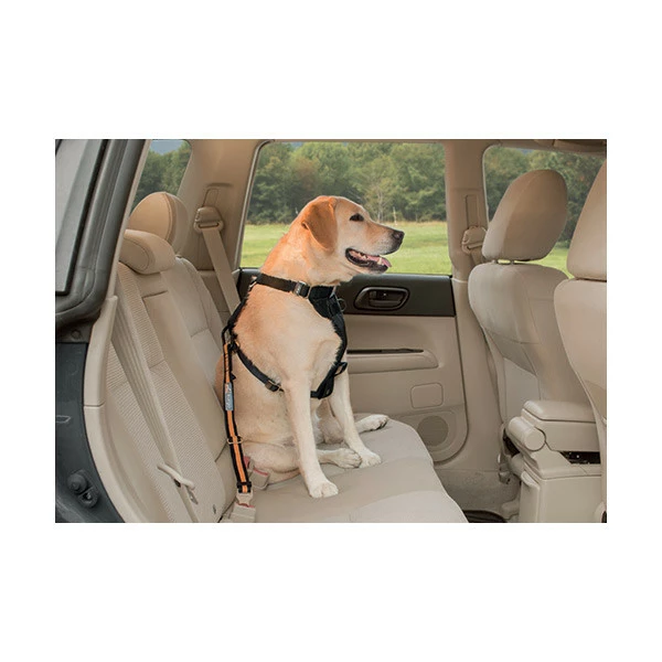 Le mousqueton très solide en acier, se fixe au harnais du chien, ce qui permet de laisser le système de retenue toujours fixé à la banquette.