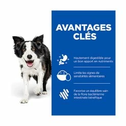 Les croquettes mĂ©dicalisĂ©es Prescription Diet Canine i/d Sensitive aide Ă la prise en charge simultanĂ©e des troubles gastro-intestinaux et des signes d’intolĂ©rances alimentaires, grĂące Ă sa formulation particuliĂšre et son appĂ©tence remarquable.