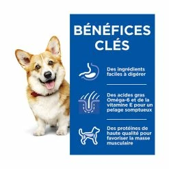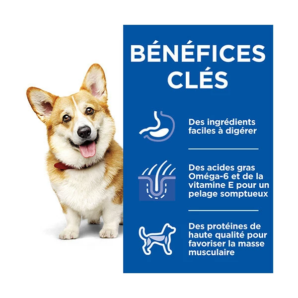 - Soutient un systÚme digestif sain et le bon développement de la masse musculaire chez les chiens adultes ùgés de 1 à 6 ans