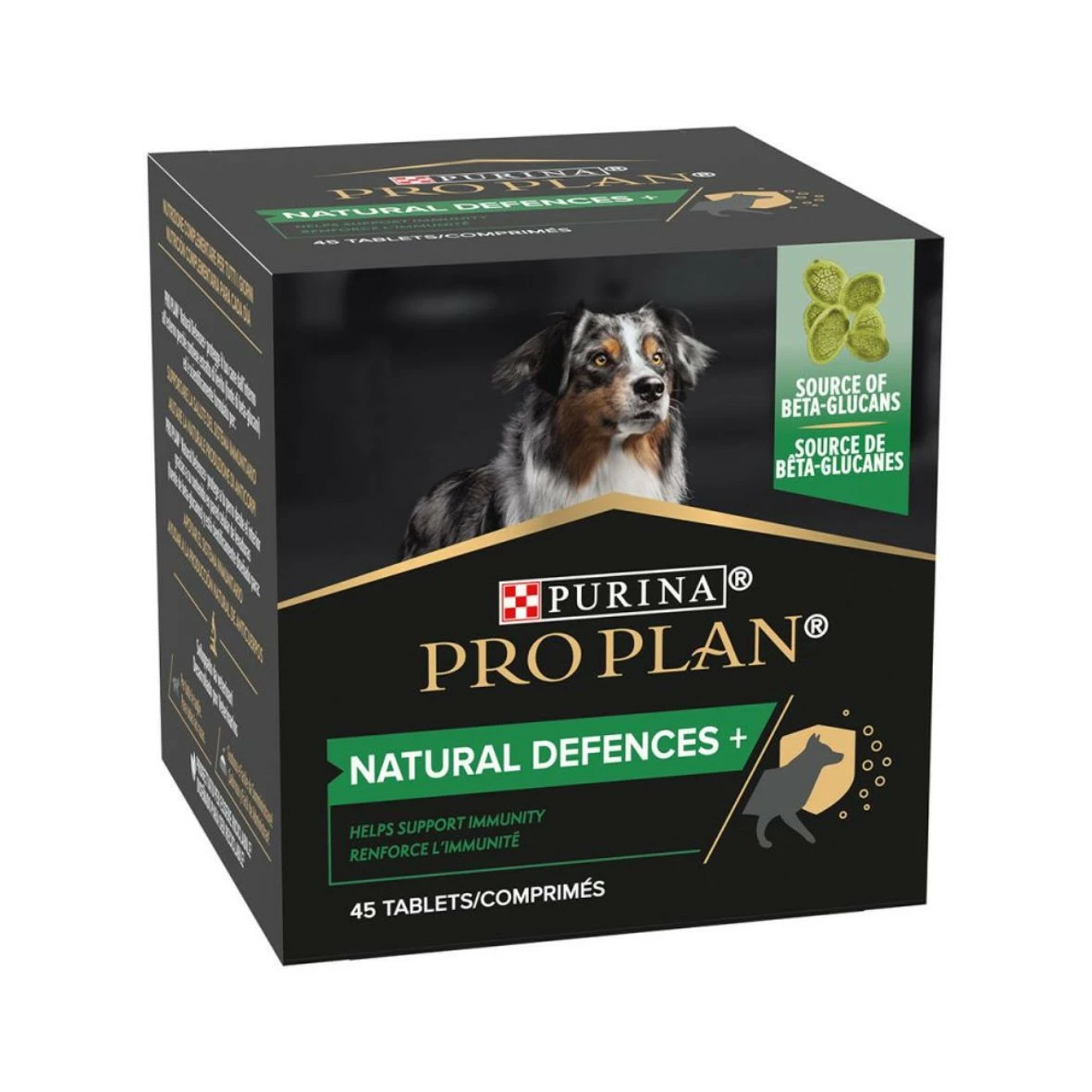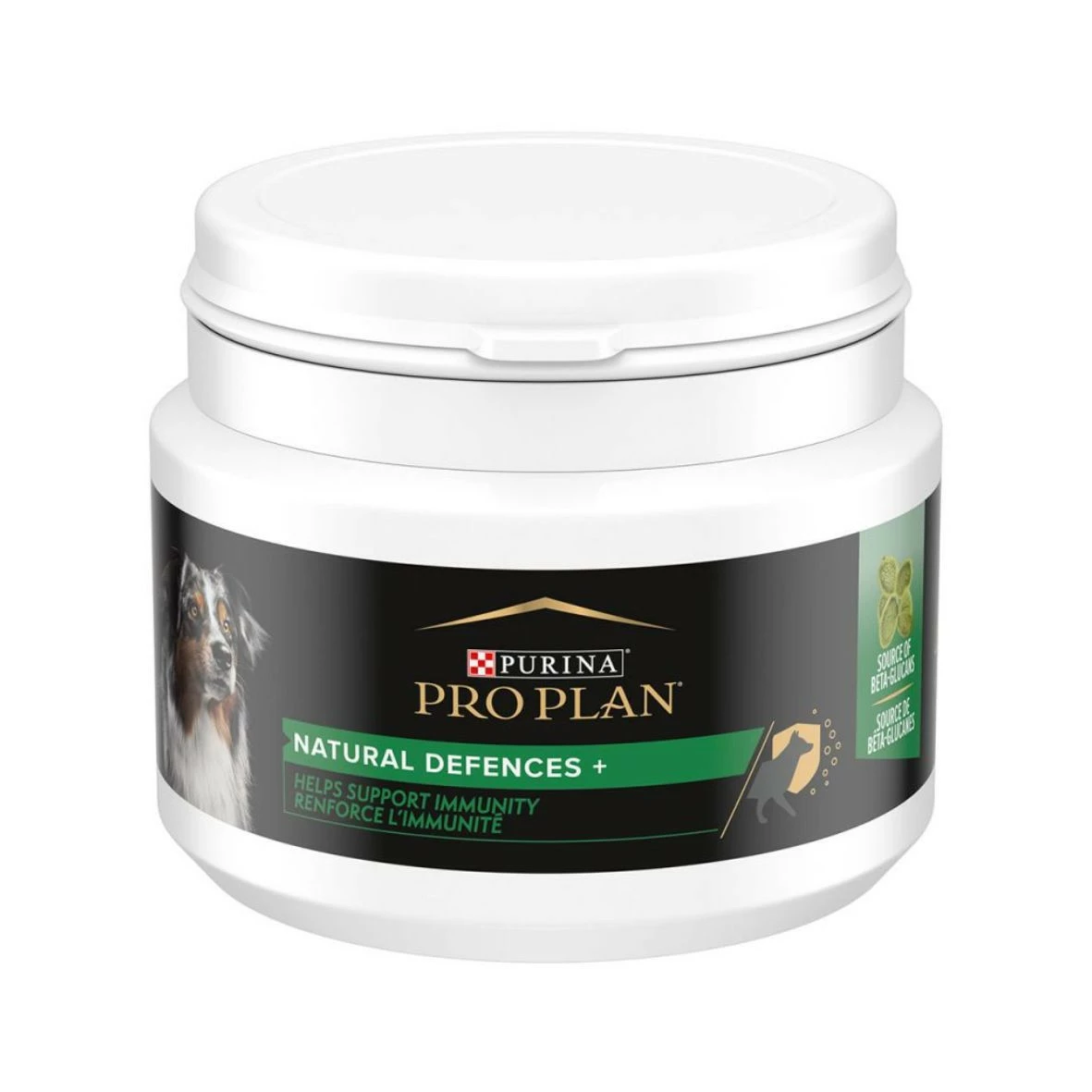 Proplan Natural Defences + pour chien est un complément alimentaire, conçu par des vétérinaires, renforçant le systÚme immuntaire de votre chien et améliorant ses défenses naturelles.