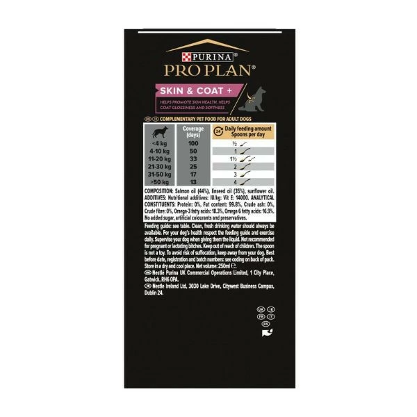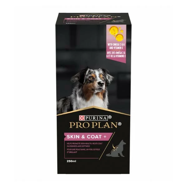 Proplan Skin & Coat + pour chien est un complément alimentaire enrichi en Oméga 3 et 6, formulé par des vétérinaires pour soutenir la santé de la peau et du pelage de votre chien.