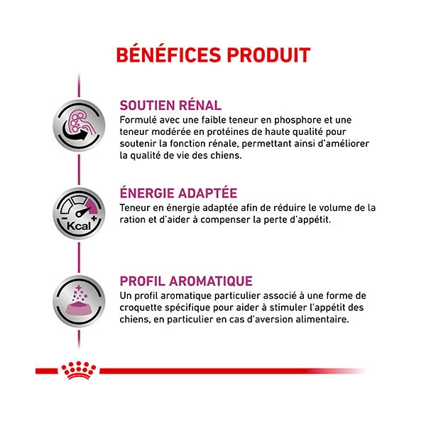 Les croquettes mĂ©dicalisĂ©es Royal Canin Veterinary Diet Renal Special ont Ă©tĂ© Ă©laborĂ©es pour les chiens souffrant d’insuffisance rĂ©nale chronique, pour la prĂ©vention des calculs d’oxalate de calcium et pour la gestion des rĂ©cidives d’urolithiase (calculs d’urate et de cystine).