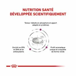 - Encadrement dĂ©tĂ©tique de la MRC : Sa formule a Ă©tĂ© Ă©laborĂ©e pour soutenir la fonction rĂ©nale lors de MRC. Le taux de phosphore est rĂ©duit, et un apport d’antioxydants, d’EPA et de DHA est renforcĂ©.