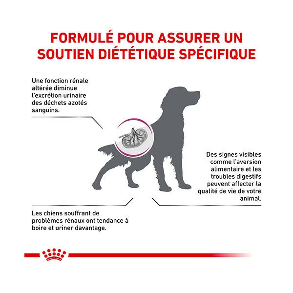 Royal Canin Renal est un aliment spĂ©cialement conçu pour les chiens victimes d’insuffisance rĂ©nale.