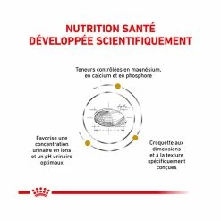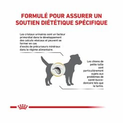 Croquettes pour petit chien (< 10 kg) ayant des problĂšmes de santĂ© urinaire. IdĂ©ale en cas de calculs urinaires de struvite (dissolutionet gestion des rĂ©cidives), calculs urinaires d’oxalate de calcium (gestion des rĂ©cidives), cystite bactĂ©rienne (gestion de la cristallurie de struvite secondaire).