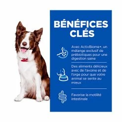 C’est pour cela que Hill’s a développé les croquettes pour chiens Science Plan Perfect Digestion en y intégrant son mélange révolutionnaire de prébiotiques : la technologie ActivBiome+. Il soutient le microbiome et favorise une digestion saine et un bien-être général.