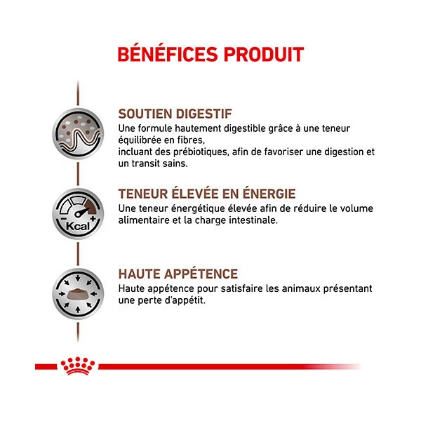 - Les chiens atteints de troubles digestifs souffrent souvent d’une baisse d’appétit et de perte de poids. Une excellente appétence favorise la consommation et donc facilite la convalescence.