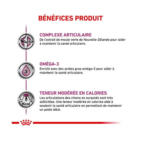 - Aide à maintenir la mobilité articulaire chez le chien.
