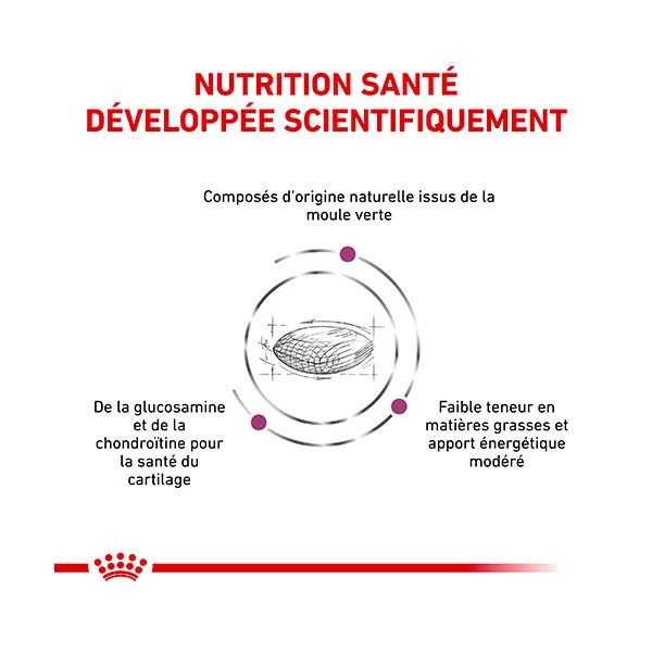 - Teneur modérée en calories favorisant le maintien du poids idéal pour limiter la sollicitation articulaire.
