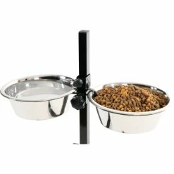 Le support est fait d’acier et de carbone, il est équipé de deux bols en inox d’une grande solidité et d’une capacité de 2.75 litres.