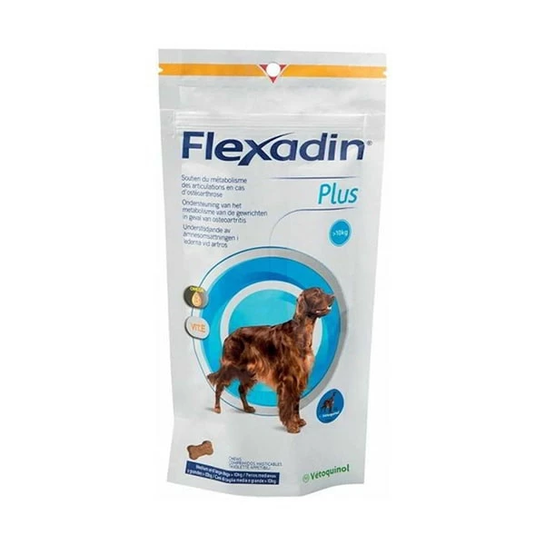 Flexadin Plus est un complément diététique pour chiens qui à pour objectif de soutenir le métabolisme des articulations en cas d’ostéo-arthrose.